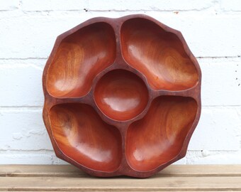 Retro Serving Dish Monkey Pod Dish Divided Bowl Round Divided Bowls Ninanest