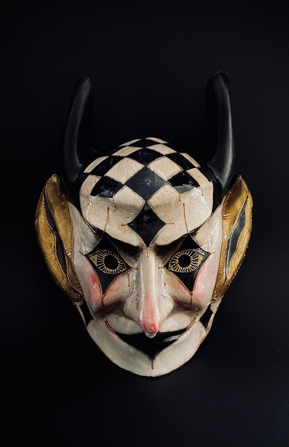 Made To Order Devil Mask Black And White Devil Mask Demon Etsy Uk